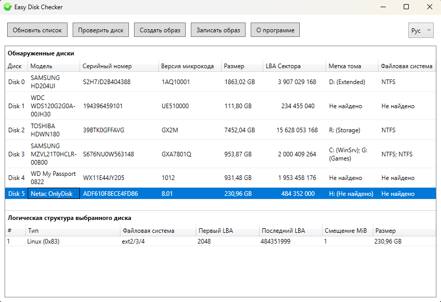 Easy Disk Checker Easy Disk Checker — утилита для простой и быстрой «однокнопочной» проверки «физического» диска\флешки\карты памяти, подключенного к ПК, независимо от файловой системы с функцией чтения\записи посекторных образов. Приложение выполнено в виде одного исполняемого EXE файла, не требует установки, не оставляет следов в системе, не ставит драйверы и не лезет в реестр. Готово к работе сразу после распаковки из ZIP архива. Поддерживаемое оборудование: - USB, NVMe, SATA и PATA контроллеры