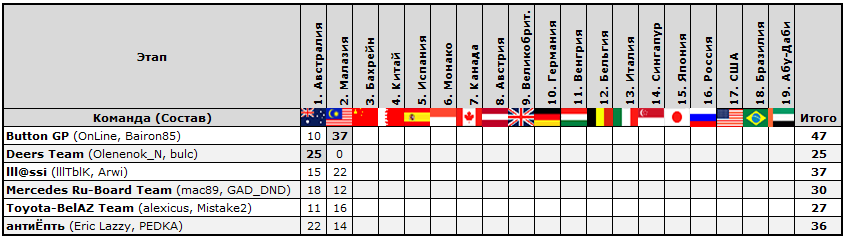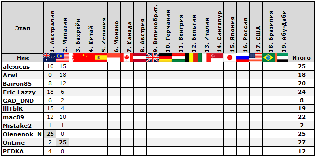 • В форме прогнозов необходимо указывать имена гонщиков, полные, латинскими буквами, как в приведенном ниже списке.