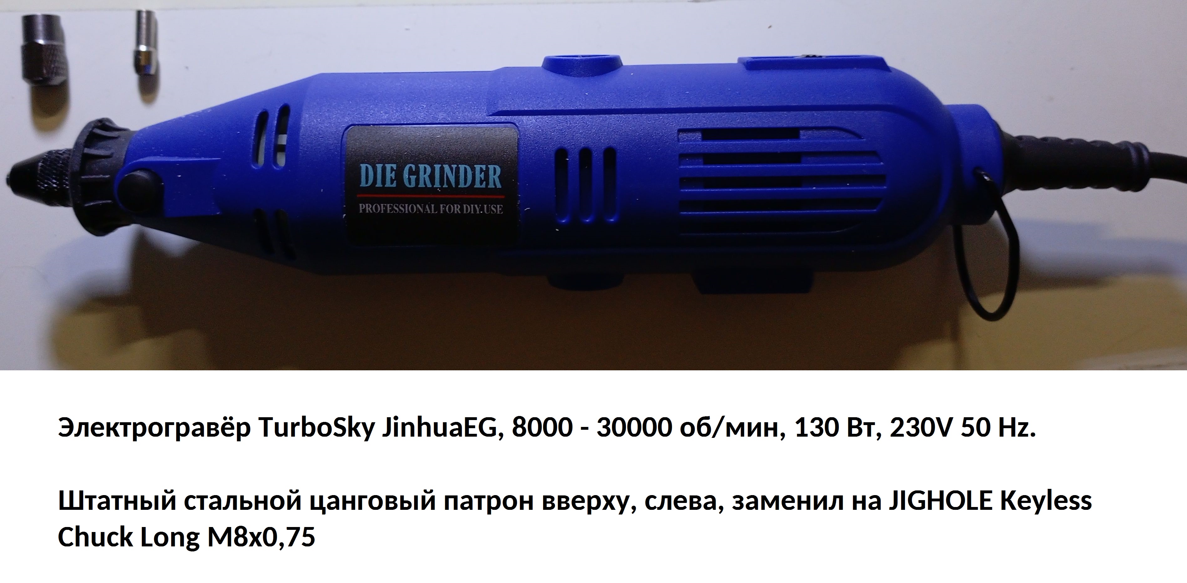 Tracker Mod | Редактировать | Профиль | Сообщение | Цитировать | Сообщить модератору Harry True Man Цитата: Даже на твёрдосплавных таких скоростей нет. Ну и скорость от диаметра заготовки/инструмента зависит по формуле (пи*диаметр*обороты)/1000 | Правильно, если не хочешь что признать, то этого точно нет! А вот как быть с тем фактом, что фреза LIDIAO 4461 3х3 (карбид вольфрама) режет закалённый до 63 HRC прессовый стержень из стали ХВГ при скорости вращения 28000 об/мин и из под неё только стружки летят? Или с тем, что она как масло срезала 8 мм в длину и 1,3 мм в глубину нержавейки когда я чинил сломанную из-за грубого просчёта конструкторов муфту блокировки вала на гравёре KUAIQU HB-005? Там как раз то ли латунный, то ли бронзовый шток кнопки Lock срезало под основание, а до того хватило пары раз легонько её нажать чтобы она вдавила края паза муфты и та перестала работать. А это, поскольку формально(!) "Механические повреждения изделия являются основанием для прекращения гарантии на него." дало мне не менее формальное право на переделку - в указанном заводом как гарантийный сервис-центре мне был предложен платный ремонт стоящий дороже минимального комплекта - привод, блок питания, набор цанг и ключ для их смены инструмента. Да, можно было бы разобрать привод и снять с него мотор с электроникой, но почему бы и не починить, тем более, что в комплект сунули Г-образный стержень из 3 мм нержавейки под видом шестигранного L-ключа? Правда для этой машинки он не нужен, но службу служит - я за пару минут с двух сторон срезал с него фрезой 1,3 мм стали и сделал ключ-замену сломанной кнопке Lock. У всех машин использующих механизм cмены насадок аналогичный машине Bosch Dremel 3000 он реализован очень просто и красиво - на валу мотора крепится стальная (в машинах с мощностью мотора 130 - 480 Вт) или латунная в менее мощных моделях проходящая через шариковый подшипник муфта с расположенным ближе к мотору продольным пазом в который при нажатии входит шток кнопки Lock и блокирует вал. А на другом от мотора конце проходящей через опорный шарикоподшипник муфты резьба под патрон и центральное отверстие диаметром от 4,2 до 5,0 мм в которое вставляется хвостовик сменной цанги. Хвостовик насадки вставляется в цангу или кулачковый патрон, проходит их насквозь и входит в торцевое отверстие муфты, а после зажимается цангой или кулачками при закрытии патрона. Вся эта конструкция вращается на скоростях от 5000 до 40000 об/мин, и у меня лежат немецкие и китайские гравировальные бор-фрезы разных диаметров от 0,3 до 2,3 мм с хвостовиком 2,35 мм под машинку Е-108 которая иные диаметры хвостовиков не принимает: из карбида вольфрама на обороте упаковки которых также указано до < 40000 rpm. Но, хотя по твоим словам они не работают! на таких скоростях вращения, но, я сего не знал и попробовал побаловаться такой фрезой на корпусе старого "косого" флопа - выгравировал слово test и кучу аброкадабры машинкой E108 имеющей скорости вращения инструмента 5000 - 10000 - 18000 об/мин, повторил то самое на титановой пластине используя TURBOSKY JinhuaEG на скорости 30000 об/мин и HARDELL HYD6001.8 на скорости 28000 об/мин. Результат надпись есть, сделана неумело ибо впервые делал, а фрезе что слону дробина... Добавлено: Цитата: Цитата: Это конструкционная сталь. Инструмент из неё не делают. | А почему корпус и кулачки патрона Bosch Dremel 4486, цанговую гайку патрона Dremel 4485 выполняют из стали #45? Это же инстру