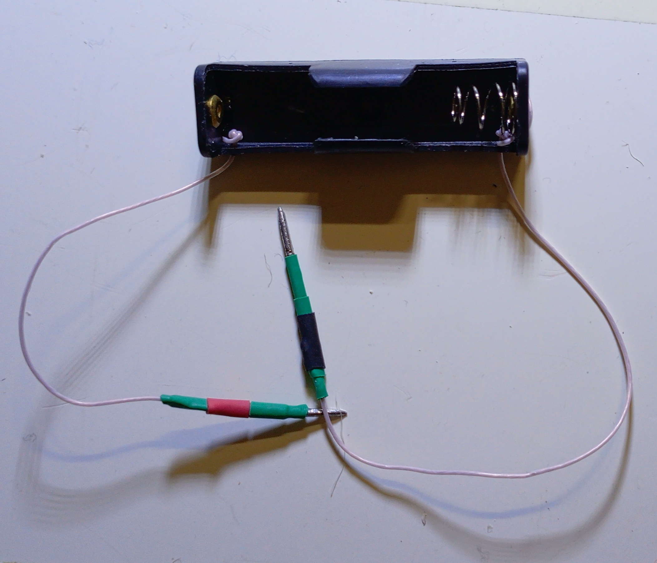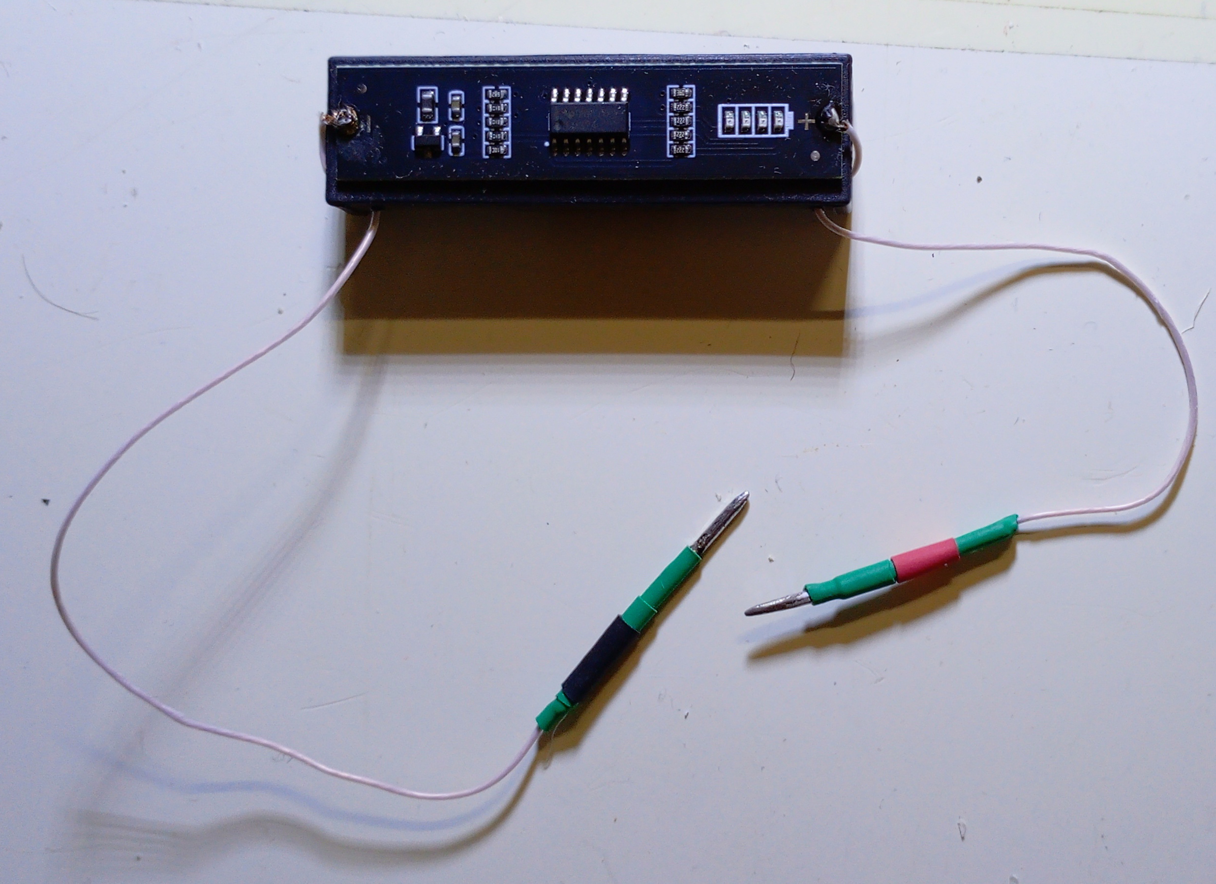Tracker Mod | Редактировать | Профиль | Сообщение | Цитировать | Сообщить модератору Индикатор уровня заряда батареи TZT для батареек AA Немного усовершенствовал - из куска медной 1,2 мм проволоки сделал щупы и припаял к контактам "+" и "" платы прибора что позволило устранить главный недостаток конструкции - плохой контакт пружины и "+" пятачка с батареями. В данном варианте прибор работает с любыми батареями с напряжением до 1,7V в т.ч. проверялся с часовыми батарейками AG3, LR1130, LR44. С AG3 показывает одно деление шкалы - ток потребления прибора для них слишком высок, с LR1130, LR44 показал все четыре деления, с элементами типоразмера 10450 (Size AAA, R03) и 14500 (Size AA, R6) напряжением 1,64V (измерено поверенным ANENG AN870) включаются все четыре деления. Щупы самодельные, размеры специально выбраны так, чтобы убирать их в батарейный отсек. Проводники МГТФ-0,12 во фторопастовой ленточной изоляции. Маркировка на щупах так же не позволит их перепутать, хотя при случайном подключении 1,7V батарейки в обратной полярности операционный усилитель на котором собран прибор не сгорит. Схема прибора чувствительна к внутреннему сопротивлению батарей, и по мере его возрастания при равном с новой напряжении для батареи с высоким внутренним сопротивлением прибор покажет меньшее число делений шкалы, а если батарея выработала свой ресурс не включится. Эта его особенность позволяет быстро отбраковывать аккумуляторы с напряжением до 1,7V по признаку "хороший", "ещё годен", "желательна замена" и "непригоден" в процессе их эксплуатации без использования более дорогих специализированных приборов.
