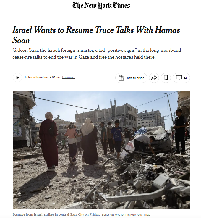 BANNED | Редактировать | Профиль | Сообщение | Цитировать | Сообщить модератору Израиль хочет вскоре возобновить переговоры о перемирии с ХАМАС Министр иностранных дел Израиля Гидеон Саар отметил «позитивные признаки» в давно зашедших в тупик переговорах о прекращении огня с целью положить конец войне в секторе Газа и освободить удерживаемых там заложников. Ущерб от израильских ударов по центральному городу Газа в пятницу.Кредит...Сахер Альгорра для The New York Times Министр иностранных дел Израиля заявил в среду, что в усилиях США по возобновлению интенсивных переговоров о прекращении огня с ХАМАС наблюдаются обнадеживающие признаки, добавив, что Израиль надеется на возобновление переговоров «как можно скорее». Заявление министра Гидеона Саара прозвучало на следующий день после того, как президент Трамп заявил, что Израиль согласился на «условия для завершения» 60-дневного прекращения огня с ХАМАС, что позволит освободить часть заложников, все еще удерживаемых в секторе Газа. «Есть некоторые позитивные признаки», — сказал г-н Саар журналистам на пресс-конференции в Эстонии во время дипломатического тура по странам Балтии. «Но наша цель — начать непрямые переговоры как можно скорее», — добавил он, имея в виду посредническую челночную дипломатию, необходимую для конкретизации деталей соглашения. В среду ХАМАС заявил, что рассматривает новое предложение, поддержанное США. Импульс к новым переговорам усилился как раз перед запланированной на следующую неделю в Вашингтоне встречей премьер-министра Биньямина Нетаньяху с президентом Трампом . И это последовало за недавним решением США присоединиться к Израилю в бомбардировке иранских ядерных объектов, что является давней амбицией Израиля. Г-н Трамп, который все больше выражает свое разочарование тем, что он назвал «этой очень жестокой войной» в Газе, заявил, что надеется увидеть прекращение огня уже на следующей неделе. Три израильских чиновника, которые говорили на условиях анонимности, чтобы обсудить деликатную дипломатию, заявили, что последние усилия, поддерживаемые США, направлены на то, чтобы предоставить ХАМАС более надежные гарантии того, что временное перемирие может проложить путь к постоянному прекращению боевых действий. Однако точные условия нового плана действий США остались неясными, и обеим сторонам потребуются дополнительные переговоры, чтобы проработать детали перемирия, не говоря уже о постоянном прекращении огня. В то время как некоторые официальные лица предполагали, что Израиль смягчил свою позицию, г-н Нетаньяху в своей речи в среду вновь поклялся «полностью ликвидировать» ХАМАС. «Я вам говорю — больше не будет ХАМАСа», — сказал он. «Мы к этому не вернемся». Хотя израильские официальные лица с осторожным оптимизмом оценивают ход переговоров, неясно, позволит ли последняя формула преодолеть препятствия, которые постоянно мешают переговорам о прекращении войны. Г-н Нетаньяху заявил, что он готов к временному прекращению огня, но что он не прекратит войну навсегда, если ХАМАС не прекратит свое правление в секторе Газа, а его лидеры не отправятся в изгнание — условия, которые ХАМАС отвергает. Лидеры ХАМАС заявляют, что освободят всех оставшихся заложников — около 20 живых пленников и тела еще около 30 — только в том случае, если Израиль окончательно п