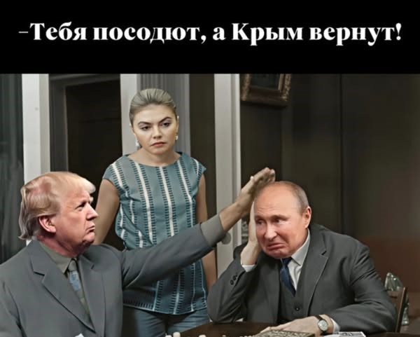 Почему у вас на картинке Трамп, американский президент, к которому вы никакого отношения не имеете, снисходительно гладит Путина по голове? Какое вообще Трампу дело до Крыма и до Украины? Я бы понял, если бы вместо Трампа был нарисован Зеленский. Мол, вот скоро, наш героический президент Зе посадит Путина в тюрягу и заберет Крым.