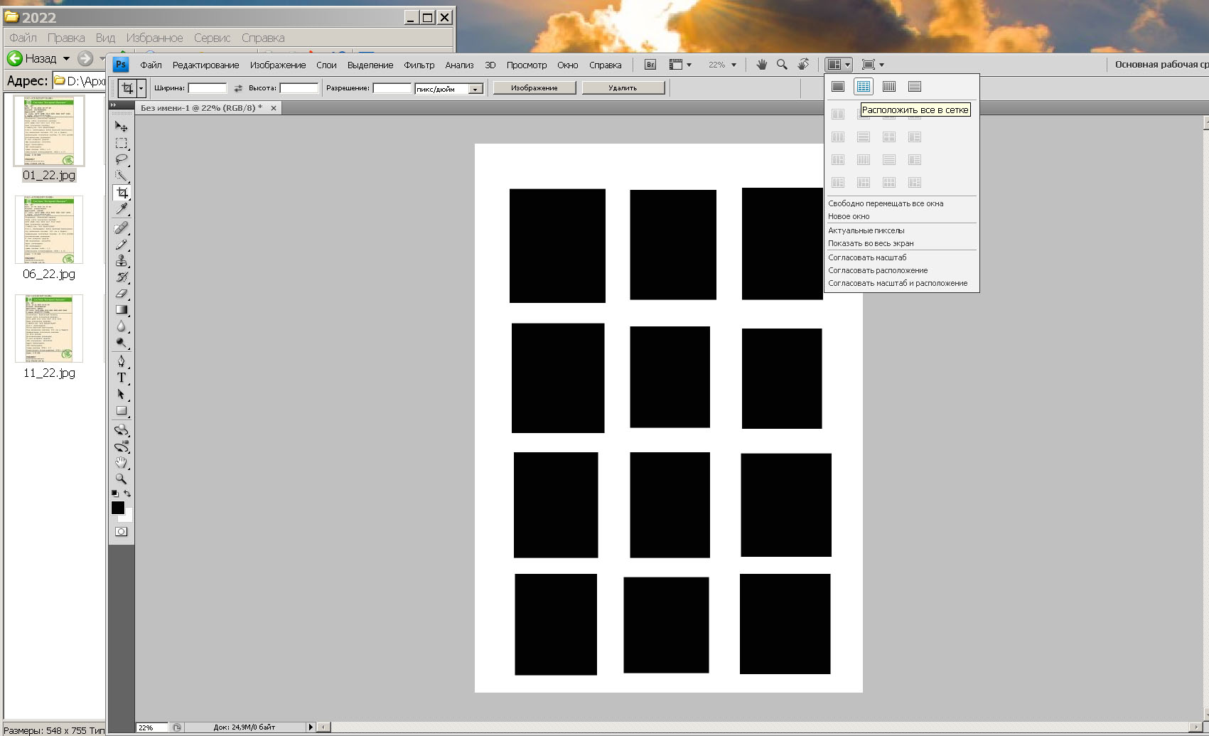 Silver Member | Редактировать | Профиль | Сообщение | Цитировать | Сообщить модератору Доброго. Возникла тут необходимость типа сдать отчетность, картинки квитков в архиве без пароля, которые отправил, открыть не могут...( Надо по годам по 12 квитков собрать на лист А4 и сохранить в одну картинку, типа как на образце с чёрными прямоугольниками: Зашел в свою портабельную версию Adobe Photoshop CS4 Ext. версия 11.0.1 на ХР3, поковырялся, слева квитки, справа ярлык функции упорядочит документы, перетягиваешь квиток, а он на весь лист А4 разворачивается...( Полагаю, что как-то возможно на листе А4 выделить области типа как на образце и потом в каждую из них затянуть свой квиток, сохранить лист как 1_ну картинку, повторить со следующим годом, но как это сделать не догоняю...( Просьба к грамотным подсказать как сделать, или может, если не в лом и есть минута, сделать лист А4 основу с расположением ячеек как в сетке, разумеется тока ровно и симметрично, скинуть, а заполню сам...( Благодарю, с наилучшими. Добавлено: Отбой, просьба о содействии снимается, разобрался таки, задача решается через команду Поместить...) С наилучшими. | Всего записей: 4468 | Зарегистр. 31-07-2009 | Отправлено: 22:31 17-12-2025 | Исправлено: moroka33, 00:37 18-12-2025 |