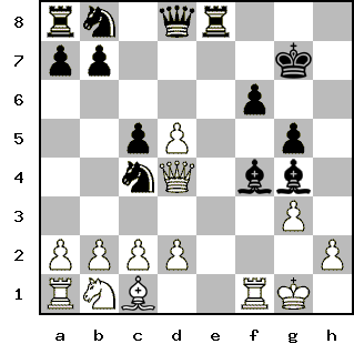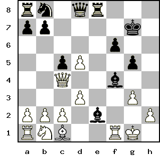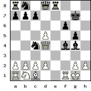 Advanced Member | Редактировать | Профиль | Сообщение | Цитировать | Сообщить модератору 12. ... Ng4-e3 Цитата:| королева подаётся в бега... | Куда же Вы, мадам? Роман на стороне не вышел, останьтесь же, по крайней мере, верной законному супругу. Тем более, что ему наверняка хотелось бы встретить тяжелые времена в кругу семьи... Цитата:| ты имел в виду е1? возможно, но я предпочёл рискнуть, я ж белыми, надо типа атаковать... | Да, конечно, я имел ввиду именно е1. Кстати, только сейчас обратил внимание на запись твоего хода в соответствующем посте - пешки, в общем-то, так не ходят - ты бы поправил пост (кнопочка в скрипте вствавляет последний, а не первый ход ). А насчет атаки - атаковать могут и белые, и черные, но один в поле не воин, а ферзь зачастую не лучшая кандидатура для разведки боем. | Всего записей: 1050 | Зарегистр. 19-05-2004 | Отправлено: 16:40 23-05-2007 | Исправлено: PapaKarlo, 03:53 28-05-2007 |