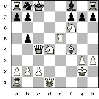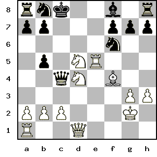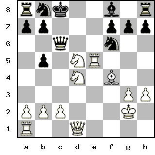 Moderator | Редактировать | Профиль | Сообщение | ICQ | Цитировать | Сообщить модератору 22. Nf6 - Bd6 Antuan Цитата: И вот, как зайца по полям Гоняют чёрного ферзя, И беспокоят там и сям: Тюда - нельзя, сюда-нельзя | Чуть не загнали моего ферзя. Но зреет новая атака, Теперь на короля.