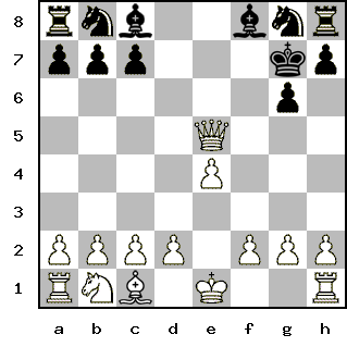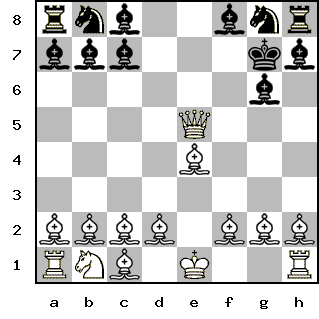Добавлено: [chess]W:Ke1,Qe5,Ra1,h1,Nb1,Bc1,Pa2,b2,c2,d2,e4,f2,g2,h2/B:Kg7,Ra8,h8,Nb8,g8,Bc8,f8,Pa7,b7,c7,g6,h7">[/chess] Добавлено: http://ru-board.com/chess/chess.php?position=W:Ke1,Qd1Ra1,h1,Nb1,Ng1,Bc1,Bf1,Pa2,b2,c2,d2,e2,f2,g2,h2/B:Ke8,Qd8,Ra8,h8,Nb8,g8,Bc8,f8,Pa7,b7,c7,d7,e7,f7,g7,h7 Добавлено: Добавлено: batva ИМХО лучше в случае неправильного синтаксиса не текст віводился, а картинка с ошибкой.