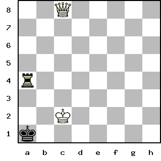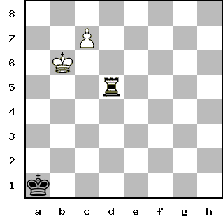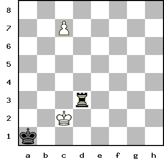 Silver Member | Редактировать | Профиль | Сообщение | ICQ | Цитировать | Сообщить модератору frenjogle Цитата:| Это случайно не та, которую сначала неправильно решили, а потом кто-то нашел таки правильный способ? | я читал, что сначала задача ставилась как победа белых, затем как ничья за черных, затем снова как победа белых. В первом варианте этюд заканчивался ходом Kb3-c2, уходя от очередного шаха, после чего ладья черных уже не может сделать шах, не погибнув на следующем ходу Но из этого положения черные еще могут надеяться на ничью уже после превращения пешки в фигуру. Но каким образом? Для простоты анализа будем считать, что если пешка белых превратилась в ферзя, а черные не сумели ближайшим ходом организовать ничью или материальный перевес в свою пользу, игра завершается победой белых |