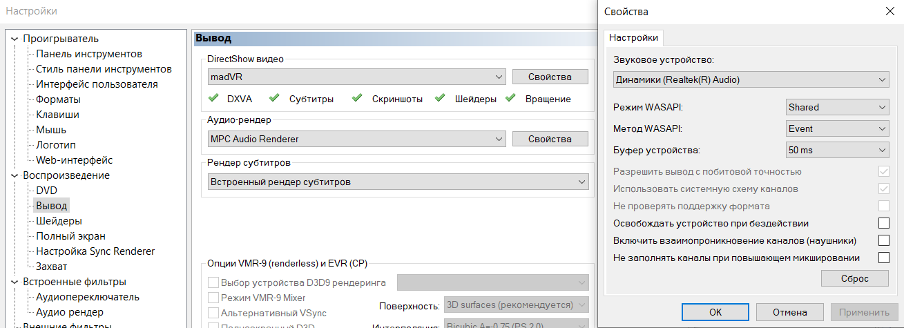 GitHub automated builds Ночные сборки собираются волонтерами. Автоматические сборки в официальном репозитории (требуется учетка на GitHub): MPC-BE MpcVideoRenderer ! Прежде, чем сообщать о проблеме, обязательно проверяем ее наличие на последней актуальной ночной сборке. ! Последняя версия с поддержкой Windows XP - 1.4.6 (билд 1590) | неофициальная v1.4.7 от Evgeniy_1990 История изменений. Список всех изменений. Заменяемая графика: тулбары, фоновые картинки, иконки. Схема управления плеером посредством тачскрина. Системные требования: Windоws 7, 8, 8.1, 10 (32bit/64bit) Процессор с поддержкой SSE2 (начиная с версии 1.5.1 build 2631) Видеокарта с поддержкой DirectX 9.0c (PS 3.0) Замечания: 1. HLS (HTTP Live Streaming) поддерживается частично. Если требуется, то установите в систему LAV Splitter Source, иногда помогает. 2. Ускоренное воспроизведение без изменения тона звука поддерживается, если активировать MPC Audio Renderer. 3. Для работы MPC-BE не нужно устанавливать standalone_filters. 4. Сегментированные файлы (matroska linked segments) и заданный непрямой порядок воспроизведения по главам (ordered chapters) не поддерживаются. Установите LAV Splitter Source или Haali Media Splitter 5. d3dcompiler_47.dll - нужен только для Win7 без обновления KB4019990. Используется для компиляции шейдеров. d3dx9_43.dll - нужен для графика в статистике EVR-CP. 6. В папке Shaders11 - шейдеры под DirectX 11 (ps_4_0); в Shaders - под DirectX 9 (ps_3_0). 7. Плеер может хранить настройки в папке плеера в файле "mpc-be64.ini" (или "mpc-be.ini"). Файл настроек можно создать вручную или сделать такое переключение в настройках. Этот режим не рекомендуется для обычных пользователей. Дополнительные фильтры: MPC Video Renderer MPC Image Source Filter MPC Script Source Filter BASS Audio Source Софт расширяющий возможности MPC-BE Голосование "Выбираем популярные видеоплееры-2018". Помощь проекту | Помощь форуму Ru.Board. Группа в телеграмме | Всего записей: 39788 | Зарегистр. 26-02-2002 | Отправлено: 11:07 07-02-2026 | Исправлено: Maz, 11:09 07-02-2026 |