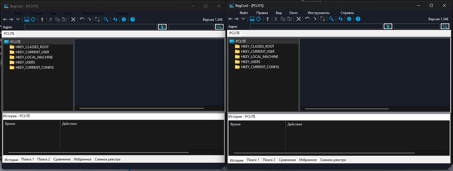 • Несколько локальных окон/вкладок реестра - вы можете открывать реестры, сравнения, снимки в нескольких локальных окнах или вкладках...