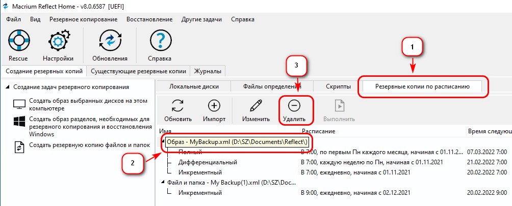 Поиском нашел https://forum.macrium.com/57759/Delete-Scheduled-Task-History