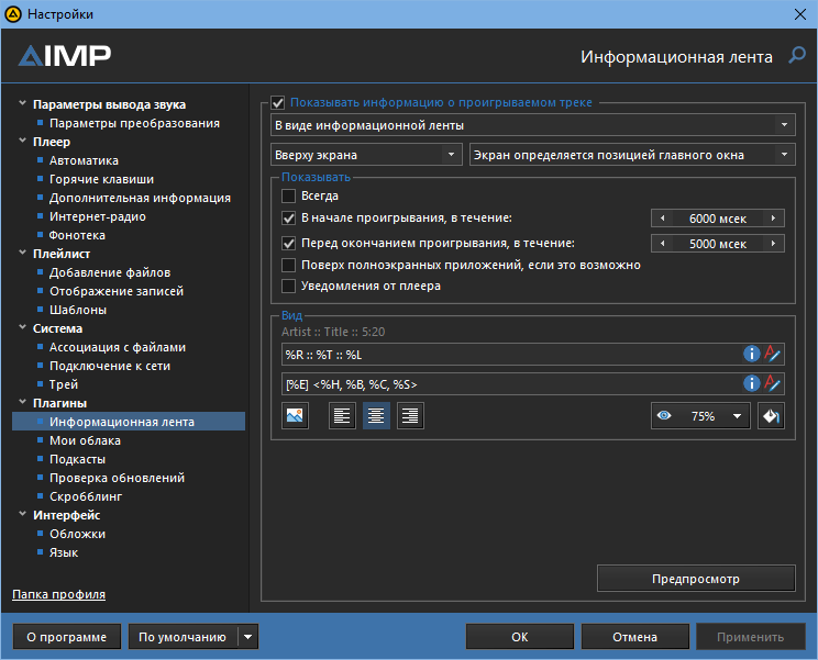 Этот плеер специально создавался для воспроизведения музыки и работы с ней. Для этого в арсенале имеется удобная аудио-библиотека для управления музыкальной коллекцией. Благодаря встроенным утилитам можно легко перекодировать музыку из одного формата в другой, делать копии Audio CD в различные форматы, записывать звук с микрофона или другого звукового устройства, редактировать теги музыкальных файлов, а также переименовывать или сортировать их группой. Есть функция записи радио в различные форматы с разбиением на треки. Имеется удобный плейлист с вкладками, как в популярных интернет-браузерах, что очень удобно. Плеер имеет мультиязычный интерфейс, в комплекте идёт большое количество локализаций, так что его смело можно назвать интернациональным. Одно из преимуществ - мощный редактор скинов, с помощью которого можно легко создать свой скин любой сложности (есть готовые скины, повторяющие интерфейс популярных плееров). Разработчик активно общается с пользователями, принимая любую критику и предложения, и пытается воплотить в плеере всё самое лучшее, что есть в других аналогичных программах. Как говорит сам разработчик: "AIMP - это аудиоплеер для людей" Разработчик: Артём Измайлов, г. Тула, Россия Поддержим AIMP в голосовании: Ваш любимый аудиоплеер - 2019 Версия для xp | Всего записей: 39710 | Зарегистр. 26-02-2002 | Отправлено: 23:14 10-02-2018 | Исправлено: zubrRB, 11:33 25-11-2025 |