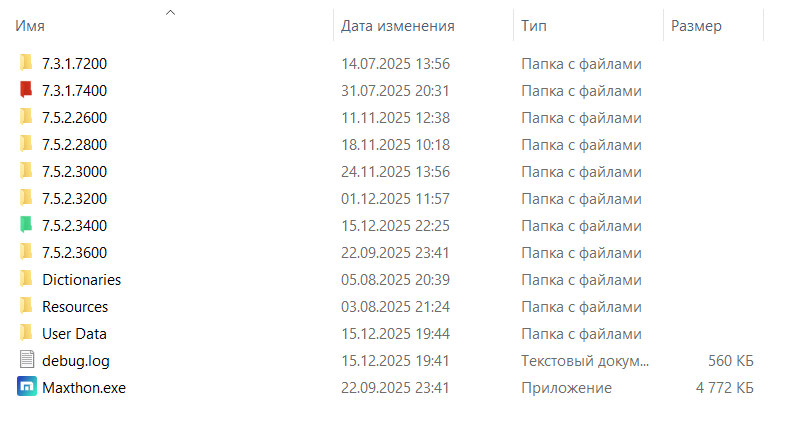 Gold Member | Редактировать | Профиль | Сообщение | Цитировать | Сообщить модератору saulus post Цитата: установил, зашел в менеджер паролей (Passkeeper) пусто, совсем. Пришлось вернуться на предыдущую портейбл (благо не снес, обычно сношу старую сразу)) Устанавливал как обычно - распаковал, скопировал свою папку User Data - паролей нет. Что то делаю не так? | Не нужно копировать папку User Data, нужно делать наоборот - распаковывать новую версию в текущую папку Макса. (по дефолту MaxthonPortable) на всякий случай делая бэкап User Data. И тогда, для отката на прошлую версию (если что-то идёт не так), в большинстве случаев, тебе нужно будет только заменить exe-шник. Разумеется удалять папки прошлых билдов не нужно. Я держу 6-7 билдов (ну это нужно мне, как тестеру). Обычно достаточно двух-трёх - последняя бета, предыдущий рабочий, и запасной условно стабильный. У меня вот так: | Всего записей: 5977 | Зарегистр. 30-01-2003 | Отправлено: 22:35 15-12-2025 | Исправлено: garryroma, 22:36 15-12-2025 |