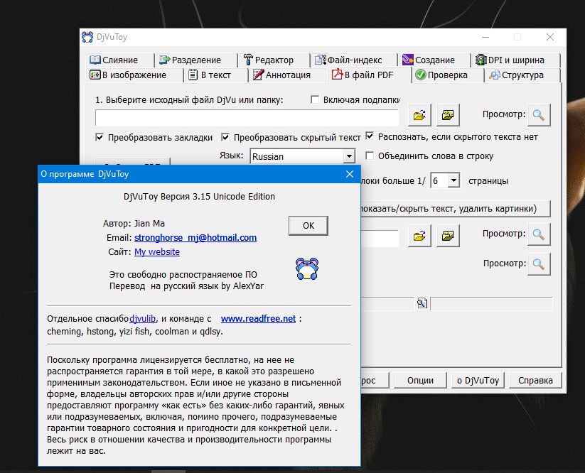 Сайт автора Jian Ma (китайский) - наиболее интересные софты: ComicEnhancer Pro, DjVuToy, FreePic2Pdf, PdgCntEditor, TiffToy Скачать