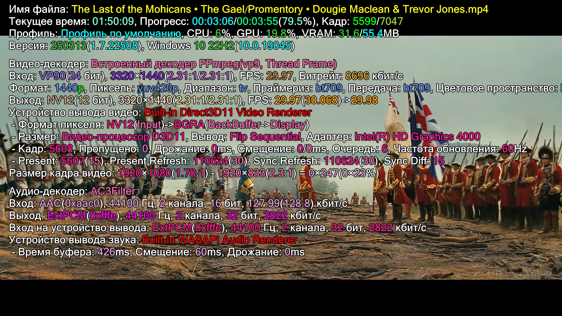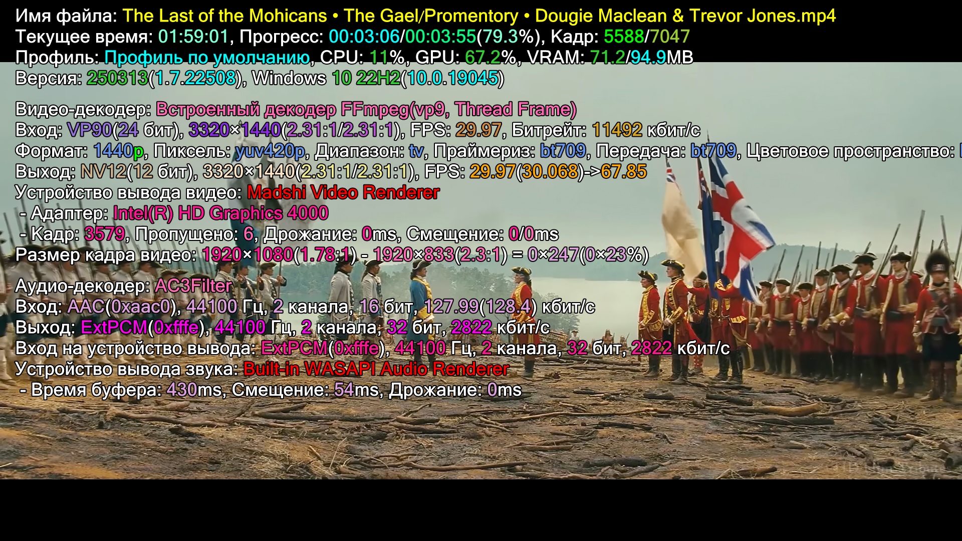 вот обычный bd видос, скриншот с инфой с него можно на встройке?, так то у меня тоже есть где посмотреть hd3000 в ноуте с 10-кой, сравню...