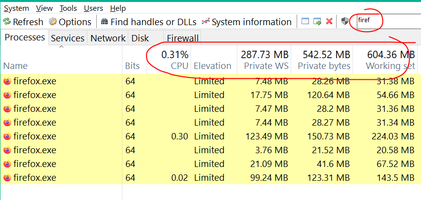 ППР: настроить под  себя колонки, свернуть конкретный процесс, Ctrl-K - увидим.