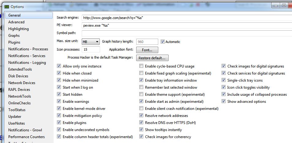 • - Запуск Process Hacker можно временно заблокировать если сделать длину файла "%USERPROFILE%\Application Data\Process Hacker\settings.xml" (processhacker.exe.settings.xml в каталоге ProcessHacker.exe для портабле режима) равной 0 байт, то ProcessHacker.exe при попытке старта не станет в него писать и просто не запустится. Чтобы снять такую блокировку нужно удалить файл "%USERPROFILE%\Application Data\Process Hacker\settings.xml" или если он есть то processhacker.exe.settings.xml в каталоге ProcessHacker.exe для портабле режима.