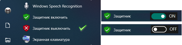 батник DefenderON.bat, который по завершении переименовывает ярлык "Защитник включить.lnk" в "Защитник выключить.lnk