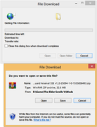 система начинает спрашивать открыть файл или сохранить его ?