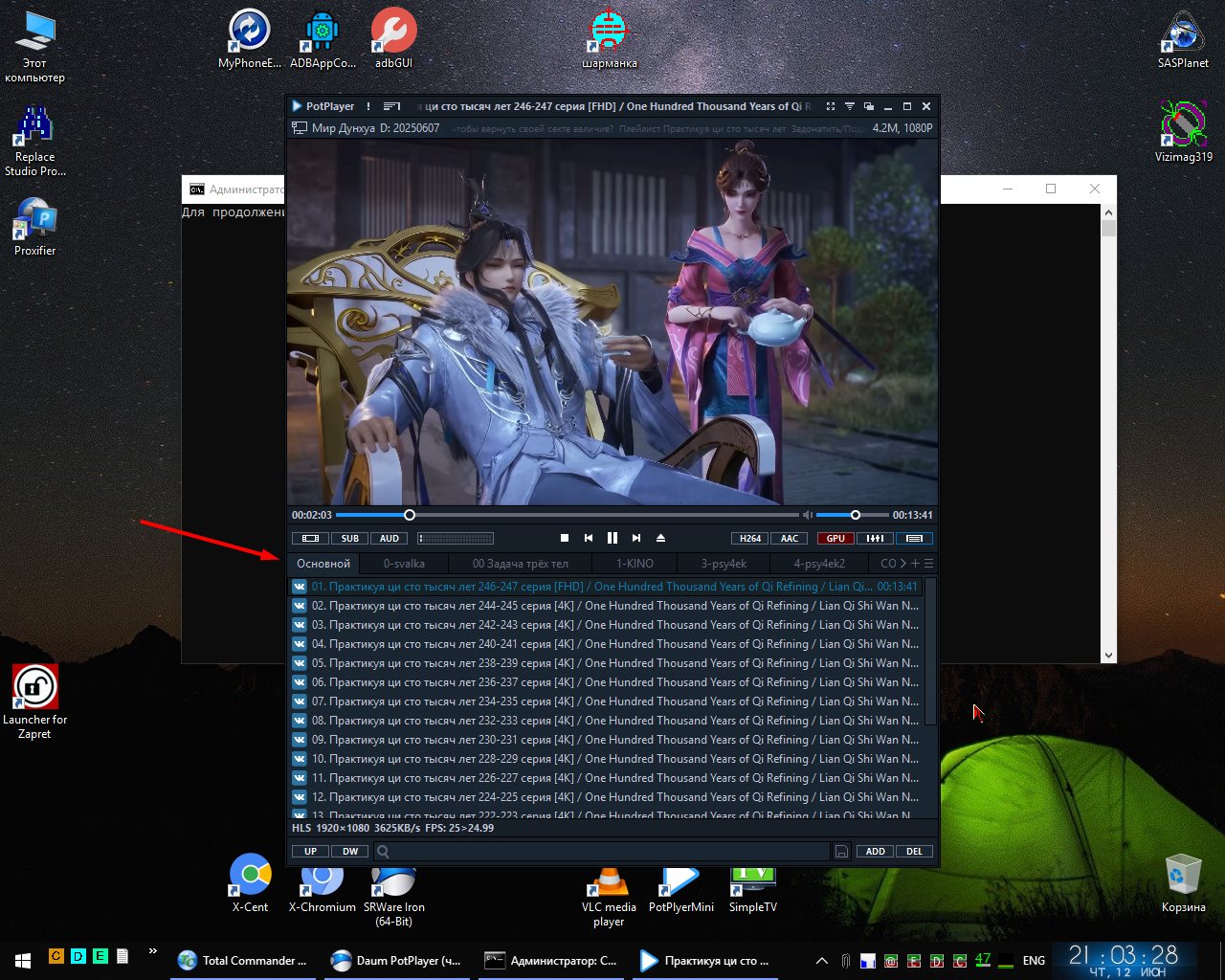 откроется потплеер и начнёт подтягивать плейлист  -  дело не быстрое, так как оно должно отпарсить титлы названий