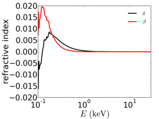 Для кремния в Х-диапазоне это выглядит так (взято отсюда http://gisaxs.com/index.php/Refractive_index ):