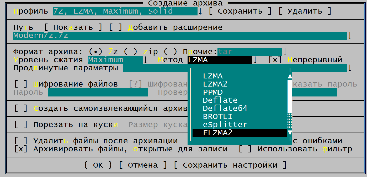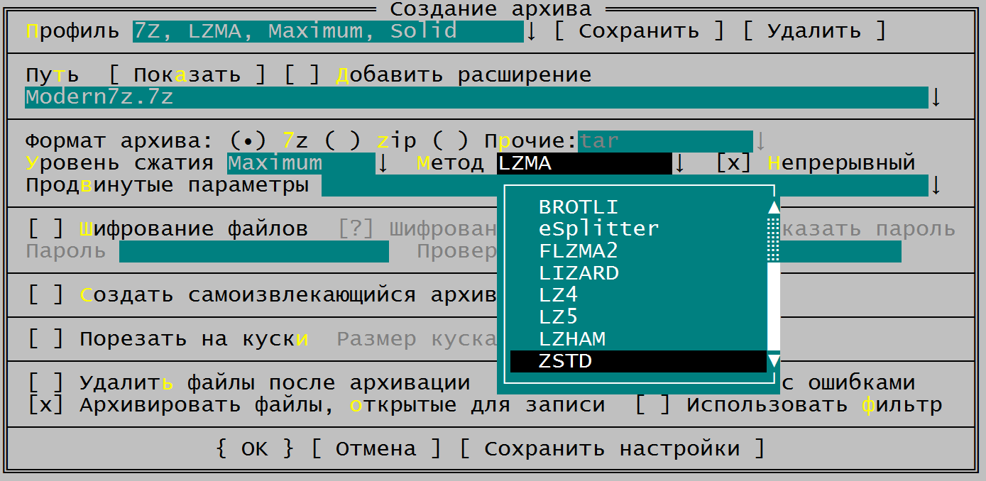 Achtung! Некоторые провайдеры блокируют официальный сайт. Заходить туда можно через ТОР/прокси или скачивать файлы со страницы проекта на SourceForge.net Скачивать с посторонних ресурсов, типа различных файлопомоек не рекомендуется, можно легко нарваться на различную заразу. Примечание: Alpha и Beta-версии 7-Zip зачастую являются развитием "стабильных" версий с улучшениями и исправлениями багов. Ссылки на альфы ищем в разделе Open Discussion форума проекта 7-Zip, там же можно получить и консультацию от разработчика. Дополнения: Плагины для архиватора 7Zip на tc4shell Архив 7-Zip ZS Форк с поддержкой дополнительных алгоритмов - Zstandard, Brotli и др. Vista+. На странице есть подробные результаты тестов разных алгоритмов и инструменты для тестирования. Ultra7z Archive Optimizer 1.09 Ахтунг! при конвертации пропадают файлы - Проверяйте количество файлов в созданном архиве! Работайте с копиями. Ultra7z Optimizer 0.12 m7zRepacker 1.0.32.301 (версия 7-zip 9.20 включена) Плагин MutiArc для Total Commander с поддержкой 7z Отдельный 7z-плагин для Total Commander Ещё один новый 7z-плагин для Total Commander - Total7zip Иные программы, поддерживающие архивацию в формате 7z Дополнительные бесплатные утилиты: 7z SFX Tools - модифицированные SFX модули 1.7.0.3900, Архив версий и 7ZSplit.exe 7z SFX Constructor - программа для сжатия файлов\папок в один *.exe Графическая оболочка для 7z SFX Tools (версия 0.6.0.1, 342 КБ, 01.05.2007) Кнопка для создания и работы с SFX-архивами 7z в Total Commander (Архив версий) (автор: GORA2) Универсальный загрузчик для многотомных 7z SFX архивов. Описание (автор: GORA2) 7-Zip Parameter Generator - генератор параметров командной строки для особых настроек сжатия Часто задаваемые вопросы: Почему для использования 2+ ГБ памяти желательно установить 64-битную версию Windоws? Как добавить к имени архива текущие дату и время? Если забыли пароль к архиву, cRARk for 7-Zip purpose, 7z Cracker, Parallel Password Recovery (7-zip module), Hashcat, Daossoft ZIP Password Rescuer А почему вообще в последних версиях убрана поддержка NSIS? Как помещать каждый файл/папку в отдельный архив? (Put each file to separate archive) | Всего записей: 39721 | Зарегистр. 26-02-2002 | Отправлено: 20:16 28-11-2021 | Исправлено: Victor_VG, 20:45 03-08-2025 |