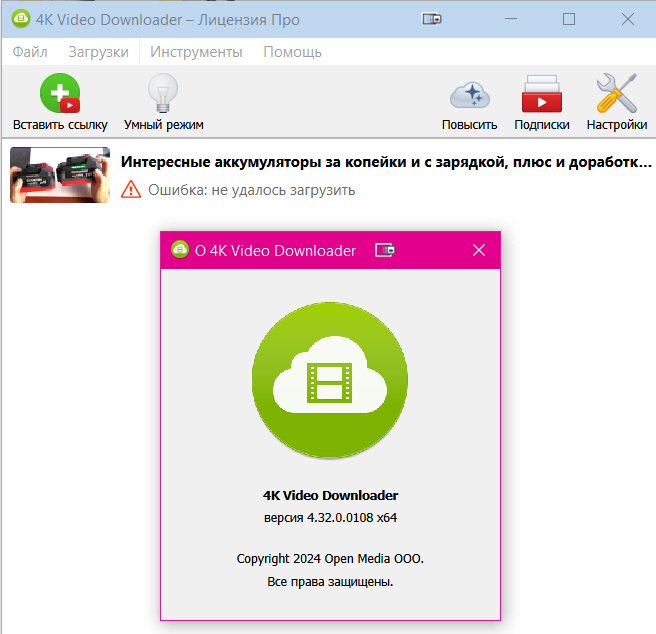 Тоже не качает 4K Video Downloader 4.32.0.0108