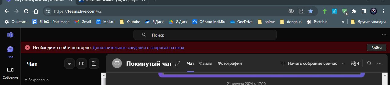 Silver Member | Редактировать | Профиль | Сообщение | Цитировать | Сообщить модератору млин.. случился анус.. сегодня просыпаюсь, и вижу на вкладке тимса плашку в красном канте - что мол Необходимо войти повторно - https://a.i.getapic.me/m54m.jpeg оно уже случалось ранее пару раз, с перерывом в квартал, и легко отпускало после Войти и вводе пасса скайповского но не в этот раз.. сейчас выполняю всё то же самое - жму Войти на плашке - в появившейся форме сразу требует пароль - ввожу - жму Продолжить - и всё останавливается на почти пустом окне с одной лишь короткой строкой текста - Too Many Requests и фсё, тупик.. пробую вновь войти по закладке на https://teams.live.com/v2/ - и нормально появляется ростер тимса - но всё с той же плашкой сверху!! пробовал и так сказать пробивочный вход - по https://teams.microsoft.com/v2/ через него сначала требует логин в виде емейла аккаунта либо логина скайпа ввожу логин скайпа - следующим окном стандартно требует пасс - ввожу скайповый пасс - и снова зависон на Too Many Requests что, всё? без впн уже никак да? Добавлено: ууууфф.. вроде отпустило)) вобщем пришлось сделать полный сброс стораджей и воркеров на тимс в браузере - из стандандартных настроек chrome://settings/clearBrowserData и chrome://settings/content/all - их полностью не очистить! необходимо выполнить следующее: на вкладке проблемного ресурса (тимс, ютуб, ..) - нажми F12 - там на таб Applications (Приложение) - слева верхний Storage (Хранилище) - справа выставь снизу галочки на всё! - и жми на синенькую Clear site data (Удалить данные сайта) всё, вот теперь точно все остатки вычищены ну и короче после проделанного, при попытке перезагрузить вкладку - меня перекинуло на вебсайт страницы тимса мелкомягких и вот там уже по справа-вверху - Войти - после логинизации, нормально открыло ростер тимса без каких либо плашек! только настройки его пришлось заново выполнить (и помойму там в Конфиденциальность появился новый включённый пункт - Взаимодействия для анализа содержимого Разрешите Teams анализировать контент, чтобы помочь вам создавать, общаться и совместно работать эффективнее. я его нафих выключил)) | Всего записей: 3217 | Зарегистр. 05-05-2010 | Отправлено: 18:26 11-07-2025 | Исправлено: FiLinX, 19:06 11-07-2025 |