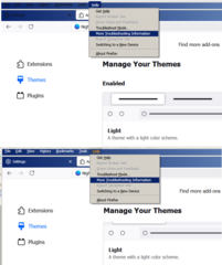 Цитата: Firefox 147.0a1 от e3kskoy7wqk. Исправлено Плохочитаемый текст меню Файл с классической темой Windows 7. | Надеюсь, автор пересоберёт и ESR-версию. Тем более, что свежий FF только что вышел. Пока что не смотрел эту новую версию 147.0a1. В главном меню, когда оно в заголовке, автор тоже исправил цвет текста при включенной классической теме Win7? Пока что для ESR 140.5 сделал себе такой фикс главного меню: в начале файла \browser\omni.ja\chrome\browser\skin\classic\browser\browser.css после строки @namespace html url("http://www.w3.org/1999/xhtml"); вставить код: Код: /* ====== fix main menu for classic theme win 7 =======*/ @media (-moz-platform: windows-win7) and (-moz-windows-classic) { :root[tabsintitlebar] { #TabsToolbar > .toolbar-items { color: light-dark(white,cyan); } #main-menubar > menu { appearance: none; color: light-dark(white,cyan); &[_moz-menuactive] { color: orange; background-color: light-dark(hsla(0,0%,0%,.12), hsla(0,0%,100%,.22)); } } } } /* =====================================*/ | При включенной классической теме Win7 главное меню читаемо со всеми встроенными в браузер темами (Light, Dark, Alpenglow). Недостаток фикса: цвета главного меню прописаны в явном виде и не наследуются из тем.