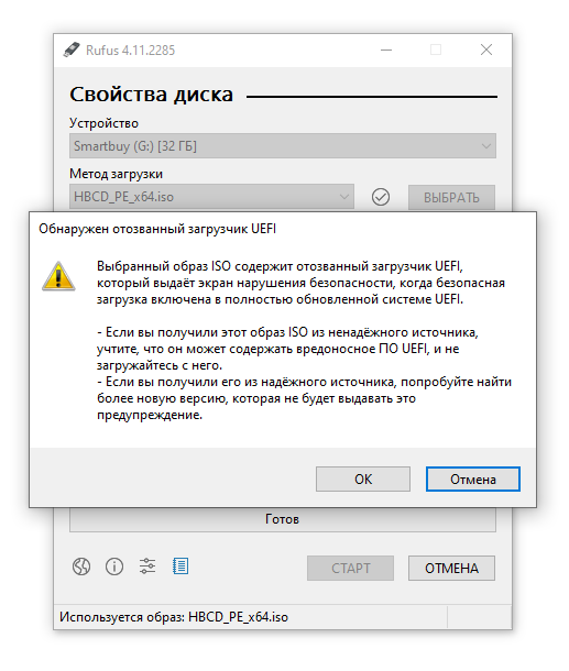 Используйте более раннюю версию Rufus, например 4.5, там такого не будет.