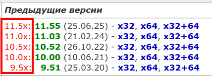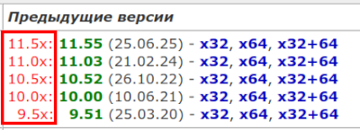 Silver Member | Редактировать | Профиль | Сообщение | Цитировать | Сообщить модератору insorg Спасибо за правку шапки. Наглядности прибавилось. Новичкам разобраться будет проще, а "местным" и старый вариант подходил, ибо они эту шапку за столько лет уже наизусть выучили. По поводу полезняшки На мой взгляд, смотрится вычурно, чужеродно и попсово. Тотал у меня ассоциируется с чем-то старым, теплым, ламповым, с тем временем, когда "трава была зеленее" и поэтому "классическое" оформление только средствами форума, более нравится и привычно. Ничего не режет глаз. А эта шляпную плашку с версией оставим для зумерков. По версиям, я бы добавил даты выхода и вместо 32 bit, написал бы x32, для сокращения. Вот так: | | 11.5x: 11.55 (25.06.25) - x32, x64, x32+64 11.0x: 11.03 (21.02.24) - x32, x64, x32+64 10.5x: 10.52 (26.10.22) - x32, x64, x32+64 10.0x: 10.00 (10.06.21) - x32, x64, x32+64 9.5x: 9.51 (25.03.20) - x32, x64, x32+64 |