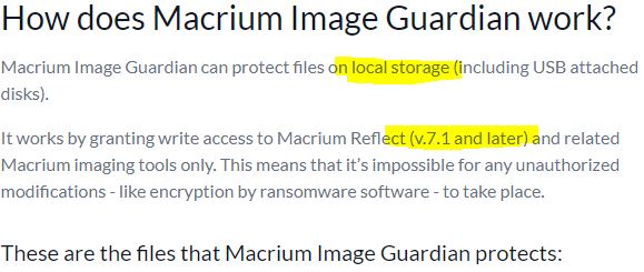 • Защита созданных образов от Ransomware (вирусов-шифровальщиков)- Macrium Image Guardian;