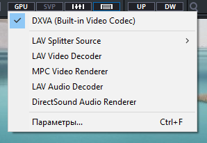 Аппаратные декодеры DXVA2, D3D11, QS, CUDA (H264/AVC,H265/HEVC,AV1,VP9,VC1,WMV3,MPEG2,MPEG4)