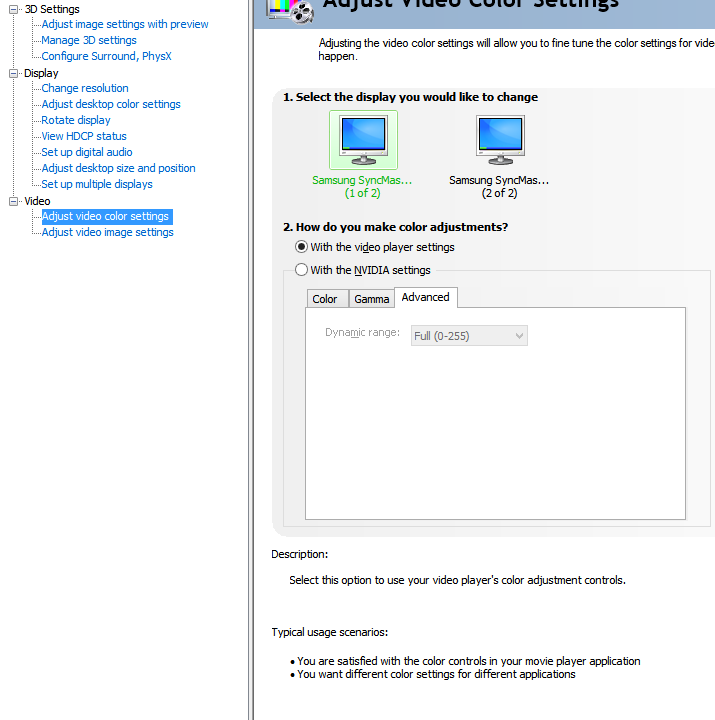 Full Member | Редактировать | Профиль | Сообщение | Цитировать | Сообщить модератору syndicate3 Цитата: 0-255 это то же самое, что "решать плееру", тот тоже выставляет 0-255, это диапазон монитора, при котором черный цвет черный 0, а не 16. Монитор PVA 2008 года. Добавлено: V0lt Цитата:| Вы путаете настройку для дислея и настройку для видео | Не путаю, речь шла именно про настройку для видео, поскольку я использую Custom EVR, на который влияет эта настройка в NVIDIA, а если рендер оконный, то почемуто выводится картинка в диапазоне 16-235, но это не важно, так как я попробовал оконный рендер VMR 9 только для эксперимента. Вопрос - почему в видео при выводе в 0-255 клипируются цвета, или, вернее, смещаются с 1 на 16. Добавлено: V0lt Цитата:| Там должно быть по умолчанию 16-235 и выбрано "управление плеером". | Это если телевизор с таким диапазоном. У меня монитор, а "выбрано плеером" в моем случае 0-255, возможно, когда подключен телевизор, плеер выбирает 16-235. В настройках драйвера PC и custom, с дополнительными частотами экрана, которых нет в списке PC. Подключение через DVI-I (цифровое) | Всего записей: 476 | Зарегистр. 02-04-2011 | Отправлено: 19:51 17-12-2025 | Исправлено: Celsus, 20:00 17-12-2025 |