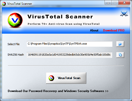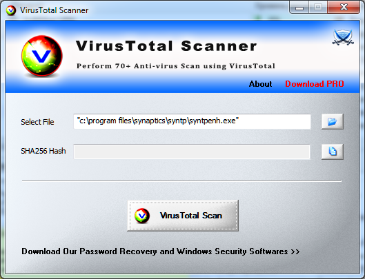И вот тогда уже в окне сканера появится и путь к файлу без кавычек, и Sha256 для него - и кнопка "Virus Total Scan" заработает!