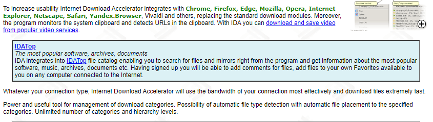 Moderator-Следопыт | Редактировать | Профиль | Сообщение | Цитировать | Сообщить модератору Предыдущие части обсуждения: 1 | 2 Разговоры о баннерах, ссылки на патчи и т.д. в Варезнике Как самому сделать Portable версию DM? Краткий обзор возможностей: - Активная наглядная корзина (полноценная работа с программой без открытия главного окна со списком закачек); - Поддержка шкур (скинов); - Динамическая многопотоковая закачка; - Докачка после обрыва связи с HTTP, HTTPS и FTP серверов; - Мощное и удобное средство управление категориями закачек; - Просмотр содержимого ZIP архивов перед закачкой, возможность закачивать только выбранные файлы из архива; - Работа с командной строкой; - Проверка закачанных файлов на обновление; - Прослушивание / просмотр музыкальных и видео файлов в процессе закачки, информация о MP3 файлах при старте закачки; - Интеграция в браузеры Micrоsoft Internet Explorer, Mozilla Firefox, Google Chrome, Vivaldi, Opera, Яндекс.Браузер, Safari и др.; - Работа с зеркалами для закачки; - Возможность закачки видео с видеосервисов YouTube.com, Metacafe.com, video.bigmir.net (полный список - на сайте плагина). Плагины: - Video Services - для закачки видео с различных видеосервисов - FileShares - позволяет скачивать файлы по короткой ссылке с RapidShare.com - Advanced Scheduler - расширенный планировщик - Remote Control DM - удалённое управление DM, требует наличие программы-клиента - Trayindicator - информация о состоянии закачек в виде иконок в трее - After Download - выполнение операций после завершения закачки (например, смена IP) - Downloads Cleanernew - утилита для удобной работы со списком закачек Список плагинов на официальном форуме Список нерешённых проблем: * Поддержка юникода для имён файлов / комментариев отсутствует (символы в имени будут обрезаны, в тексте будут «???»). * При отключении сервиса "Top Downloads", ведения Истории и отмены деления на категории - эти пункты не убираются из меню слева. * После того, как убрали иконки с кнопок, шрифт на активной кнопке становится жирным. * При запуске установки с ключом "/VERYSILENT" (очень тихий режим), по окончании открывается окно с программой, а в браузере - домашняя страница разработчиков. * Программа не может докачивать файлы, недокачанные, например, Оперой. Почему программа скачивает видео с youtube в два файла - ответ. | Всего записей: 24190 | Зарегистр. 07-04-2002 | Отправлено: 12:11 02-08-2010 | Исправлено: zubrRB, 11:25 13-09-2025 |