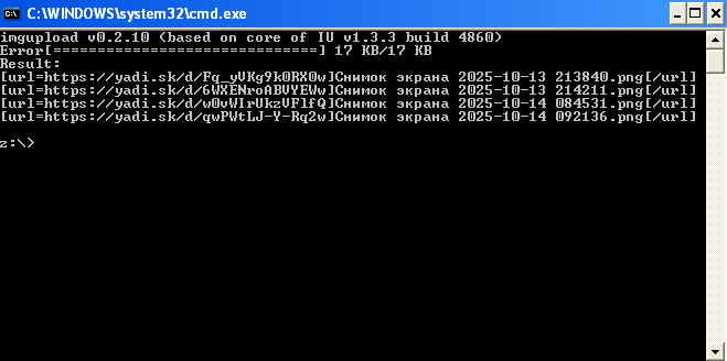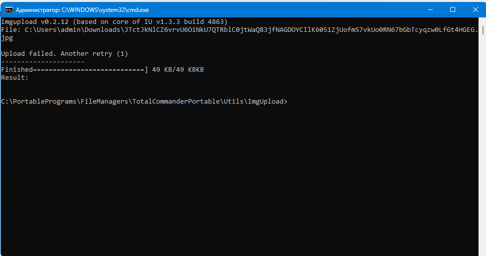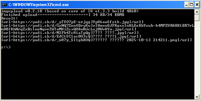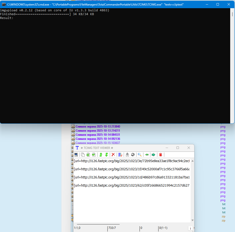 Использовал только саму imgupload, чтобы тестирование получилось как можно чище. Но есть и параметры ТС: "%P%S" Это означает мультивыбор файлов с пробелами в имени и пути. На версии 0.2.6 все отлично отрабатывает в Вин 11 25Н2. И на более ранних версиях работает. А в вин ХР не работает. Вот скрин вывода: