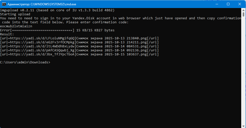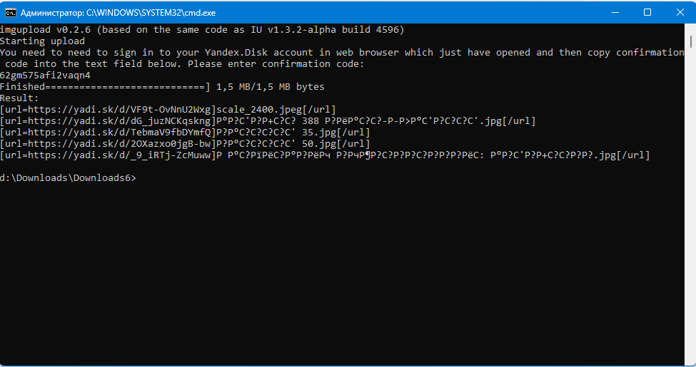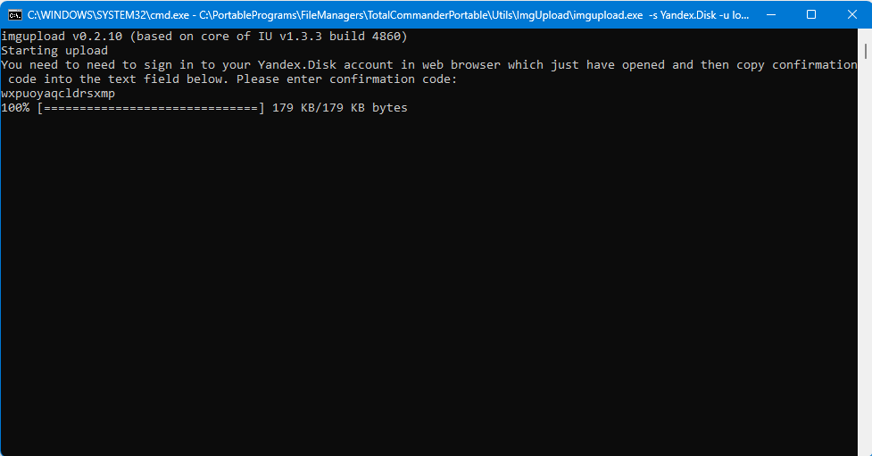 cmd /k %COMMANDER_PATH%\Utils\ImgUpload\imgupload.exe -s Yandex.Disk -u login -p password -cl bbcode -fl /ImgUpload/