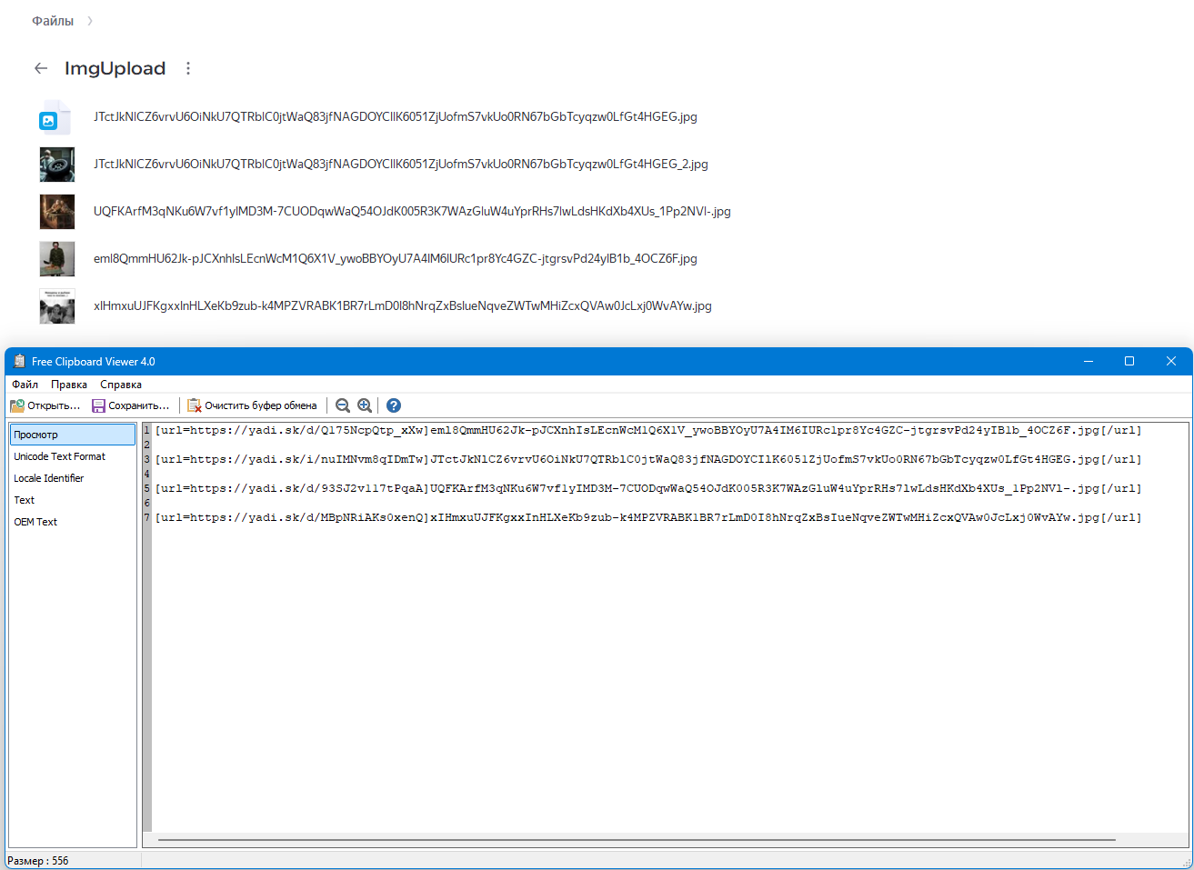 После загрузки программа выдает список ссылок или коды HTML или BBCode (для форумов, блогов и т.п.).