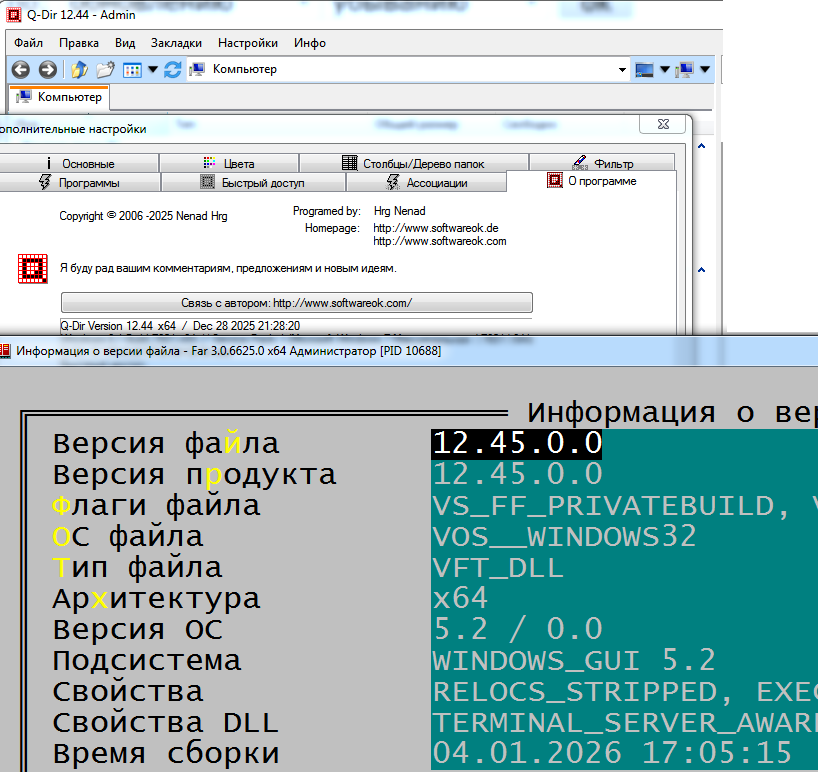 Цитата: Q-Dir v12.12 // 5 March 2025 * Further important adjustments for Windows 11 24H2 * Updating the language files in the Quad File Explorer | так, бегло глянул - мои настройки не сбежали , на семёрке вроде рабочий, но я его использую очень редко, точнее не скажу. Версию в шапке поправил.