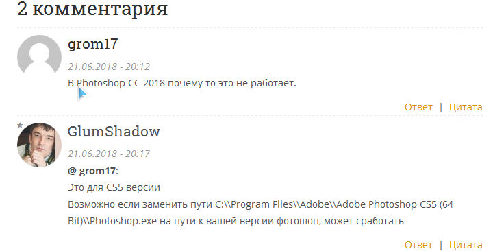 Но с Photoshop CC 2018 это не работает, по крайней мере у меня.