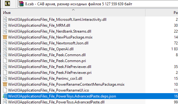 Да не, я распаковывал установщик нет там msix. Ну только один есть ImageResizerContextMenuPackage.msix а так там остальные программы в виде exe и то по-моему не все. И просто бесконечная россыпь dll-ок.