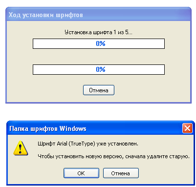 Проводник пишет, что перед установкой нового шрифта надо удалить старый. Заменять не дает вообще