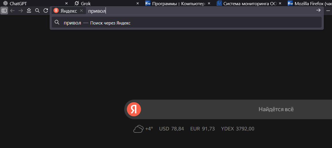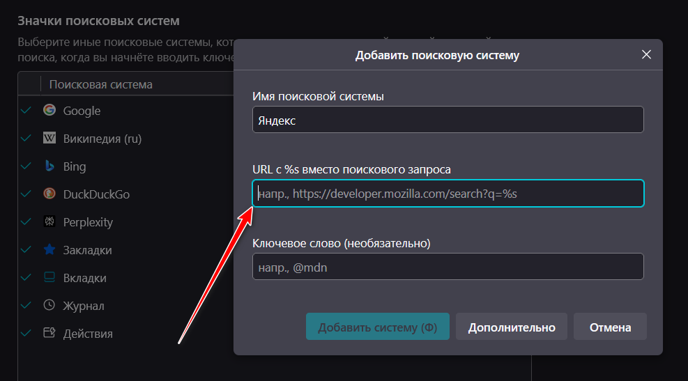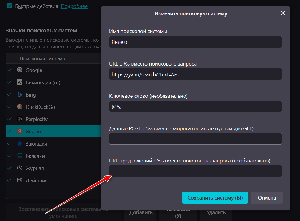 Gold Member | Редактировать | Профиль | Сообщение | Цитировать | Сообщить модератору usalex Открываете яндекс, выполняете поиск некоего слова, допустим, "firefox" В адресной строке получаете "https://ya.ru/search/?text=firefox&lr=14" Соответственно, вписать нужно https://ya.ru/search/?text=%s gutasiho Цитата: Знаю очень толкового грамотного юзера, пишушего скрипты | Когда-то я сам писал решение вот этой задачи с помощью батника и внешнего инструмента JREPL, и помню, сколько это заняло времени, а нейросетка на другом языке программирования справилась за полминуты. Если результат одинаков, то нет смысла тратить больше времени, жизнь-то у меня одна и в сутках всего 24 часа. TarasBulba Проблема на стороне Youtube. Решается сменой для ютуба юзерагента на Chrome. | Всего записей: 6332 | Зарегистр. 20-10-2006 | Отправлено: 03:08 16-10-2025 | Исправлено: Dart Raiden, 03:31 16-10-2025 |