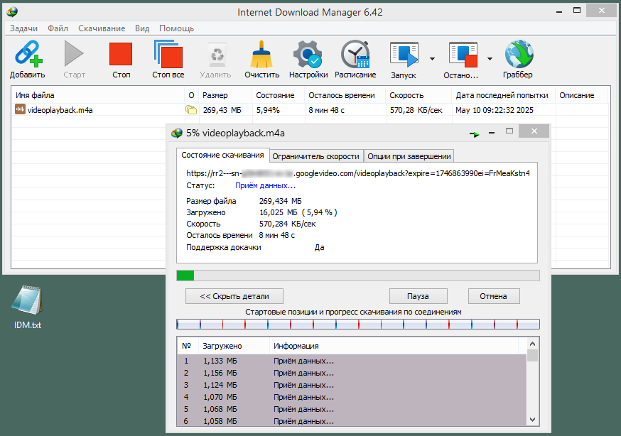 Через IDM никак? Скачиваю через yt-dlp, но это долго