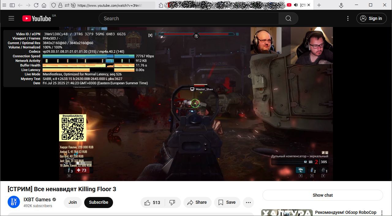 Platinum Member | Редактировать | Профиль | Сообщение | Цитировать | Сообщить модератору RazOne707 Цитата: ютуб легко может минуснуть vp9 или av1 | Не может. Ему за avc платить надо, а за эту парочку - нет. Скорее, через пару годиков плавно мигрируют на av1 с vp9 (точно так же как с 8 на 9 и с 6 на 8 в прошлые разы). Ну и попутно avc режут по выбору заметно. Раньше были все форматы и размеры, помню сам когда-то тестовые ролики оттуда скачивал для 4К и 8К в avc. Сейчас они только в av1 и vp9 отдаются. Намного сильнее пережатые, с заметно худшей картинкой, ибо зажатый битрейт сказывается. Но в целом, чисто ради задачи показать видосик или игрушку пока ещё сойдёт. Никто ж не требует от них какого-то шедеврального качества. Да и о каком качестве видео может идти речь, если они даже звук ужали с некогда средних 192 кбпс до совсем уж смешных 128 кбпс, но об этом почему-то никто даже не вспоминает, хотя это намного больнее. Добавлено: Цитата: переложить это в h264 - и абсолютно всем пользователям от этого будет лучше | Эх, если бы. Но увы. Бабло побеждает. А посему и путь у них обратный. Вангую, что со временем останется только 360р (18) и 720р (22) на нём. Те самые, которые легаси для мобилок "единым контейнером". Хотя, сейчас очень часто наблюдаю, что 22-го уже нету, доступен только 18 и небольшой набор раздельных видео и аудио. |