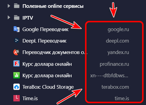Подскажите, как в боковой панели закладок скрыть отображение доменов закладок