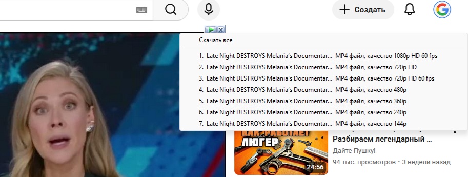 Edge и расширение IDM последние, при включённом ВПН тоже предлагаем скачать в МП4. Через расширение в браузере панели скачивания нет.