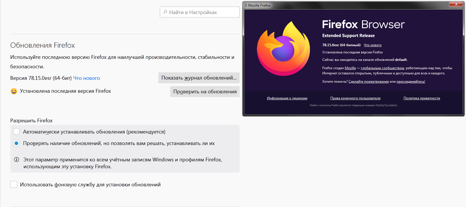 В настройках браузера про обновление выставляю "советоваться со мной перед обновлением", но все равно при каждом запуске браузера в настройках стоит галочка автоматически обновляться.
