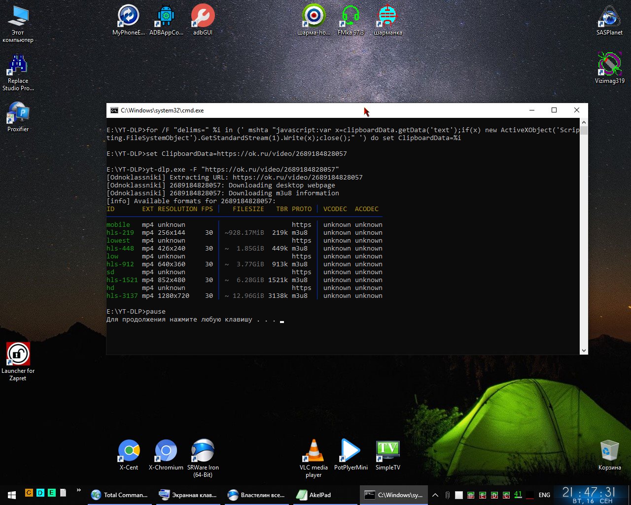 | Редактировать | Профиль | Сообщение | ICQ | Цитировать | Сообщить модератору Не первый раз наблюдаю, что если через "yt-dlp_x86_win7.exe" (хотя думаю, это от версии не зависит) загружать "18    mp4   640x360     30  2"