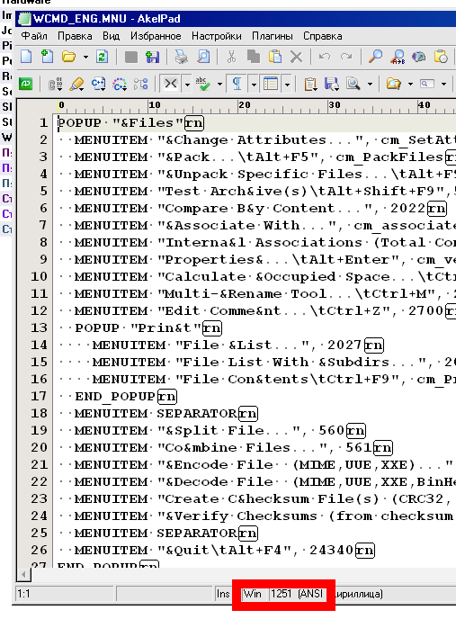 Какой ещё "он", он как раз таки 1251 ANSI. Все MNU ANSI.